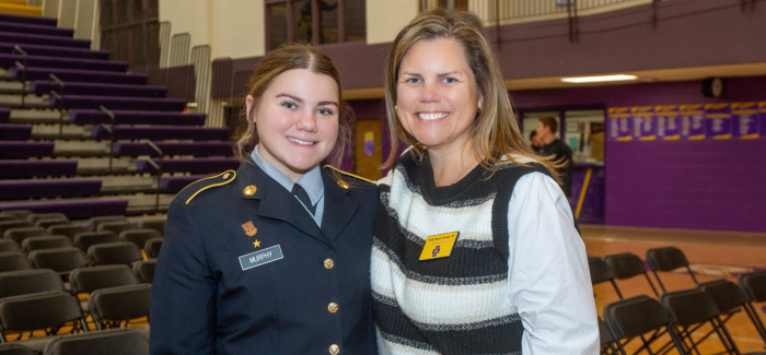 The assembly was hosted by the CDH Raider Brigade and the CDH Alumni Association, with Scott Anderson ’84, Past President of the Alumni Board, offering a warm welcome to guests. Speakers included Colonel (Ret.) Joe Scrocca, JROTC Senior Army Instructor; Cadet Colonel Bridget Bower ’26, Raider Brigade Commander; and Cadets Olivia Tharp '26 and Kaylee Perla '26. The CDH Band led the community in the Star-Spangled Banner during the presentation of the American flag. The Color Guard included the following cadets: Colin Burns '29, Anne Cavanaugh '27, Jake Mauer '29, Evelyn McKiel '27.
